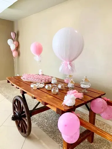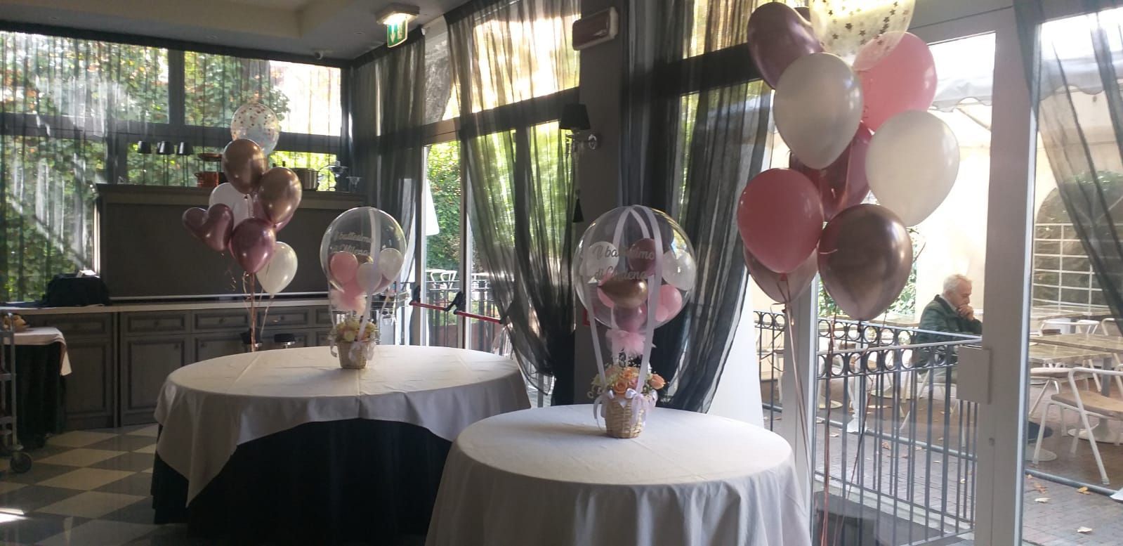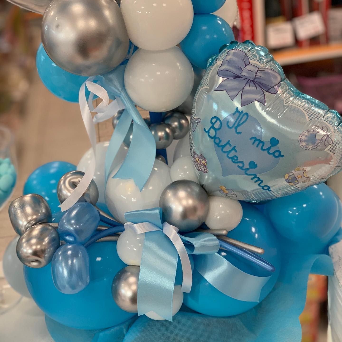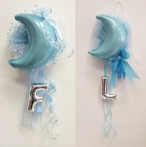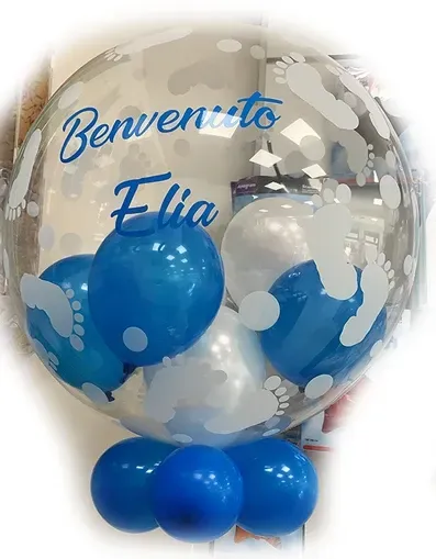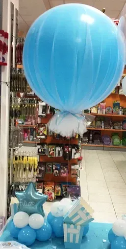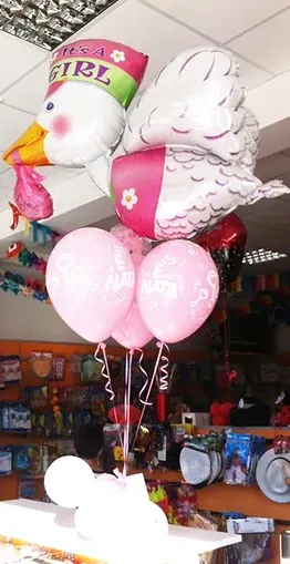 Oltre ai palloncini classici di ogni colore e con varie stampe possiamo proporti forme speciali come neonato, cicogna, biberon, ciuccio ecc; comporre il nome con lettere piccole e giganti, realizzare centrotavola, archi o composizioni di palloncini per
